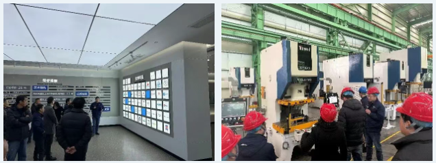 考察團(tuán)深入生產(chǎn)車間、技術(shù)研發(fā)中心及產(chǎn)品展示區(qū),重點調(diào)研伺服壓力機(jī)、開卷線、機(jī)器人切割及焊接產(chǎn)品等核心裝備。在伺服壓力機(jī)展區(qū),考察團(tuán)對設(shè)備的伺服直驅(qū)結(jié)構(gòu)、全閉環(huán)反饋控制等技術(shù)及靈活適配復(fù)雜工藝的優(yōu)勢給予高度評價,其在豐田、大眾、蔚來等車企供應(yīng)鏈的穩(wěn)定表現(xiàn)獲一致認(rèn)可;在開卷線等展區(qū),雙方就設(shè)備適配新能源汽車零部件生產(chǎn)、滿足產(chǎn)業(yè)數(shù)字化轉(zhuǎn)型需求等內(nèi)容展開細(xì)致交流。